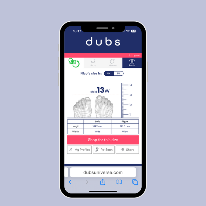 Using just your smartphone, our intuitive AI scans your child's feet with millimeter-level accuracy, making it the easiest way to get the perfect Dubs fit.